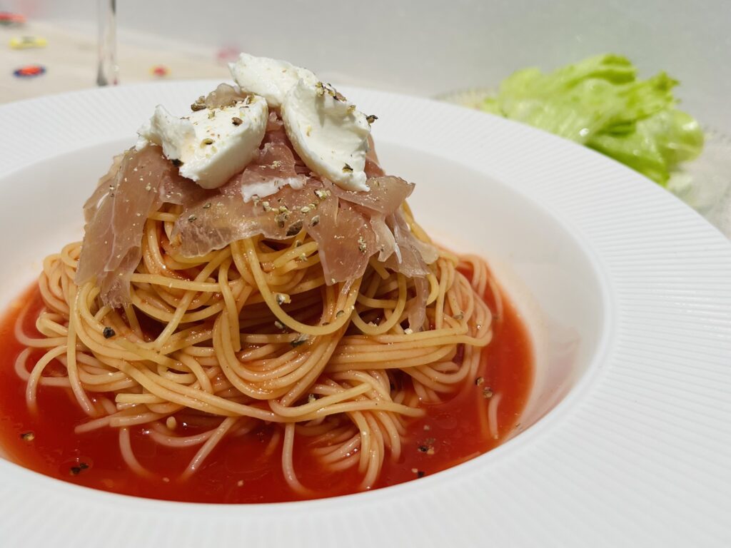 生ハムとトマトの冷製パスタ